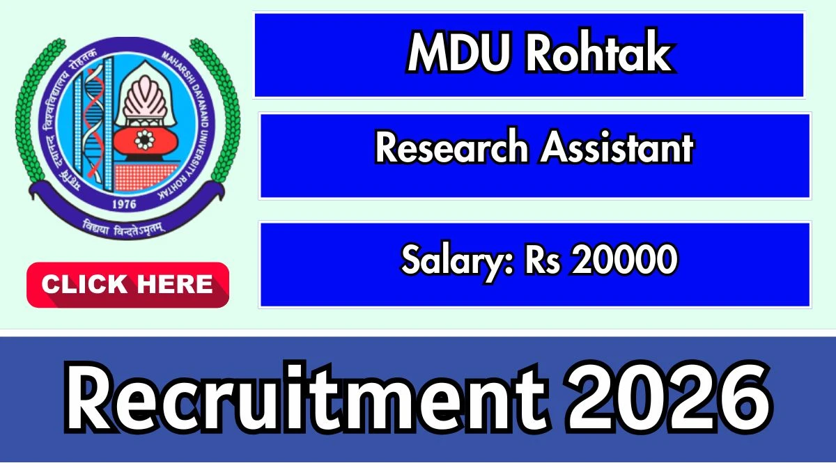 Maharshi Dayanand University (MDU Rohtak) has released an official notification for the recruitment of 01 Research Assistant Posts. Interested and eligible candidates can apply Offline through the official MDU Rohtak website. The last date to submit the application form is 30-01-2026. In this article, you’ll find the MDU Rohtak Research Assistant Posts recruitment details, including eligibility criteria, age limit, salary structure, selection process, application steps, and direct links to the official notification and Offline application form.