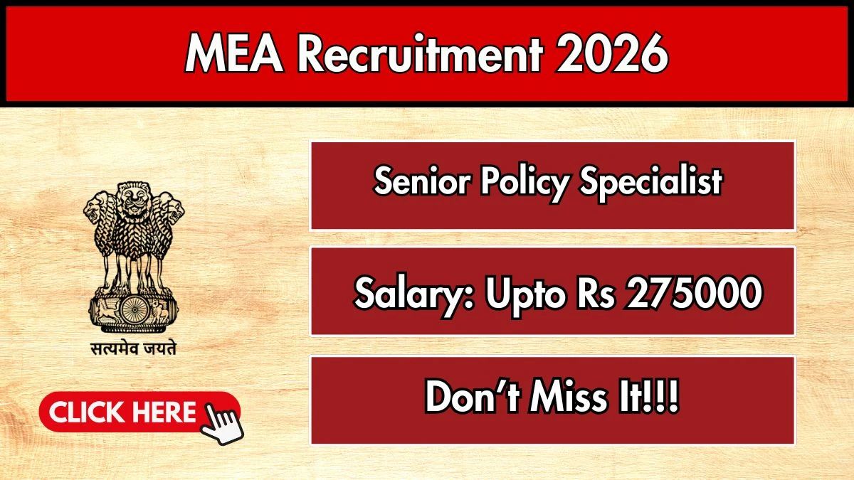 Ministry of External Affairs (MEA) has released an official notification for the recruitment of 02 Senior Policy Specialist Posts. Interested and eligible candidates can apply Offline through the official MEA website. The last date to submit the application form is 16-01-2026. In this article, you’ll find the MEA Senior Policy Specialist Posts recruitment details, including eligibility criteria, age limit, salary structure, selection process, application steps, and direct links to the official notification and Offline application form.