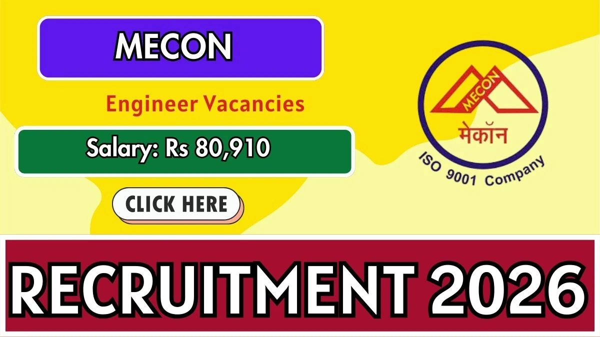 The Metallurgical and Engineering Consultants (MECON) Recruitment 2026 for posts of 01 Engineer. Candidates with B.Tech/B.E Can Apply Online. The online application opens on 06-01-2026, and closes on 20-01-2026. The candidate shall apply online through MECON website, meconlimited.co.in.