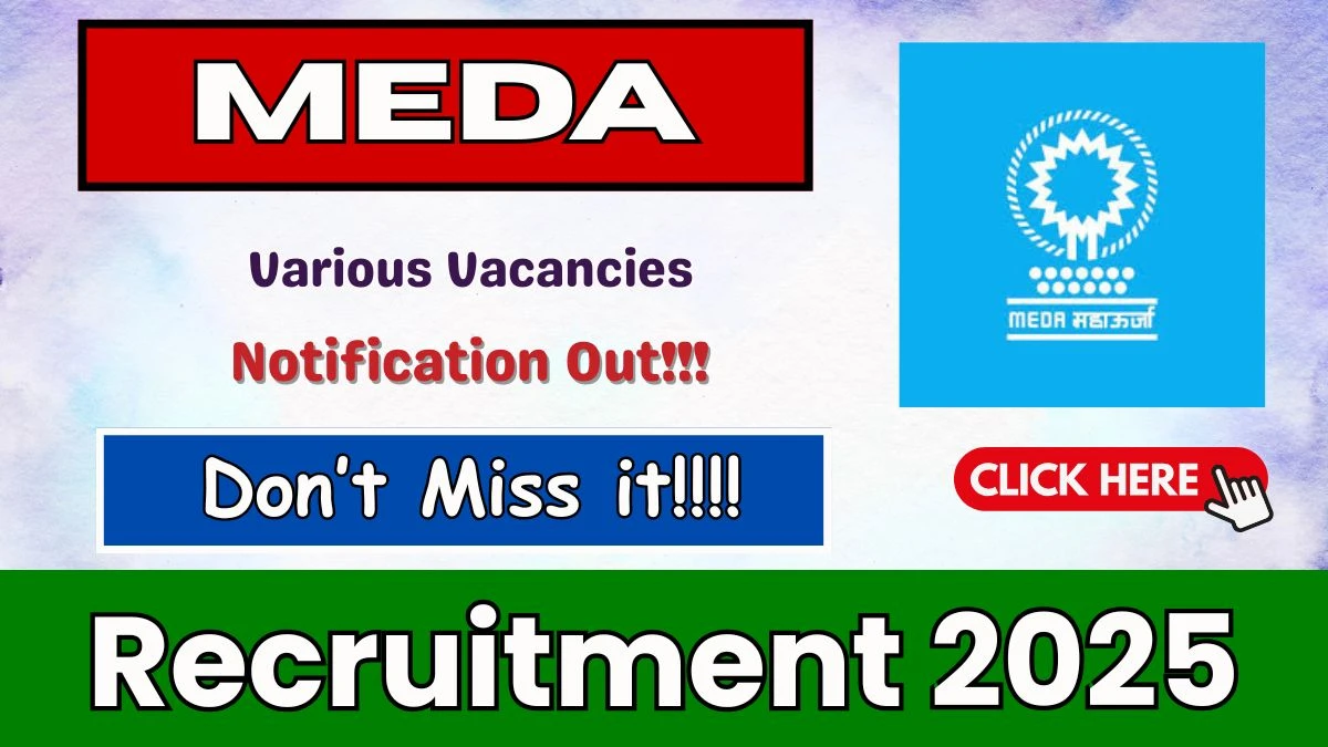 Maharashtra Energy Development Agency (MEDA) has released an official notification for the recruitment of 42 Project Executive Officer, Accountant and Other Posts. Interested and eligible candidates can apply Online through the official MEDA website. The last date to submit the application form is 05-01-2026. In this article, you’ll find the MEDA Project Executive Officer, Accountant and Other Posts recruitment details, including eligibility criteria, age limit, salary structure, selection process, application steps, and direct links to the official notification and Online application form.