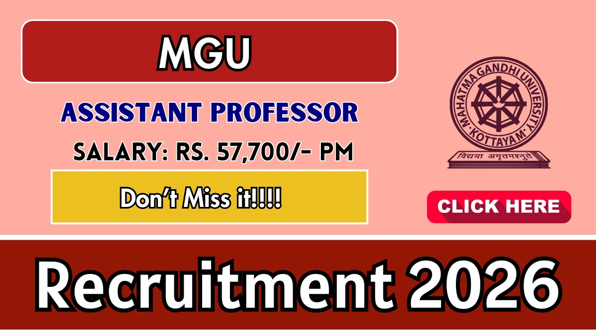 Mahatma Gandhi University (MGU) has released an official notification for the recruitment of 9 Assistant Professor Posts. Interested and eligible candidates can apply Online through the official MGU website. The last date to submit the application form is 31-03-2026.