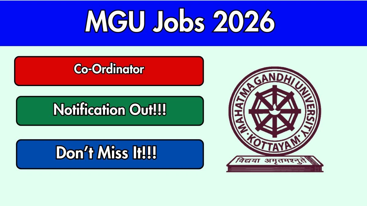 Mahatma Gandhi University, Kerala (MGU) has released an official notification for the recruitment of 1 Co-Ordinator Posts. Interested and eligible candidates can apply Offline by sending the application form to the official address. The last date to submit the application is 25-03-2026.