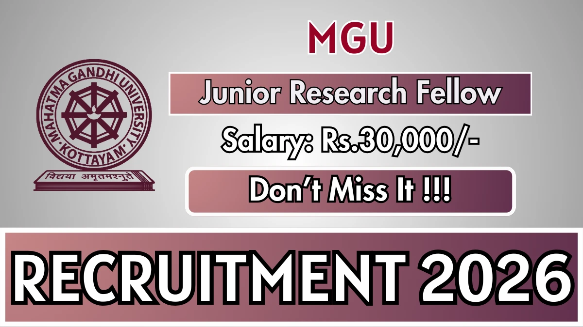 Mahatma Gandhi University (MGU) has released an official notification for the recruitment of 01 Junior Research Fellow Posts. Interested and eligible candidates can apply Offline through the official MGU website. The last date to submit the application form is 03-03-2026. In this article, you’ll find the MGU Junior Research Fellow Posts recruitment details, including eligibility criteria, age limit, salary structure, selection process, application steps, and direct links to the official notification and Offline application form.