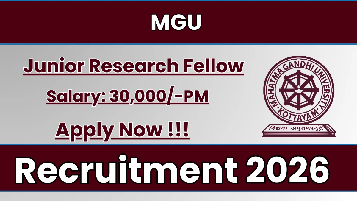 Mahatma Gandhi University (MGU) has released an official notification for the recruitment of 01 Junior Research Fellow Posts. Interested and eligible candidates can apply Online through the official MGU website. The last date to submit the application form is 03-03-2026. In this article, you’ll find the MGU Junior Research Fellow Posts recruitment details, including eligibility criteria, age limit, salary structure, selection process, application steps, and direct links to the official notification and Online application form.