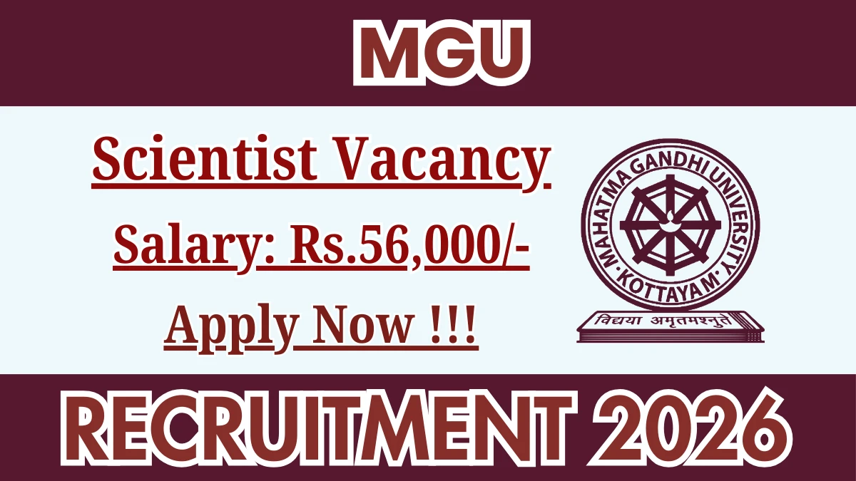 The Mahatma Gandhi University (MGU) Recruitment 2026 for posts of 01 Scientist. Candidates with M.Phil/Ph.D Can Apply Offline. The Offline application opens on 08-01-2026, and closes on 22-01-2026. The candidate shall apply Offline through MGU website, mgu.ac.in.