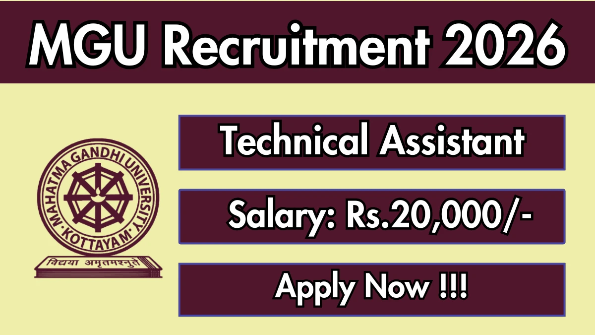 The Mahatma Gandhi University (MGU) Recruitment 2026 for posts of 01 Technical Assistant. Candidates with M.Sc Can Apply Offline. The Offline application opens on 05-01-2026, and closes on 14-01-2026. The candidate shall apply Offline through MGU website, mgu.ac.in.