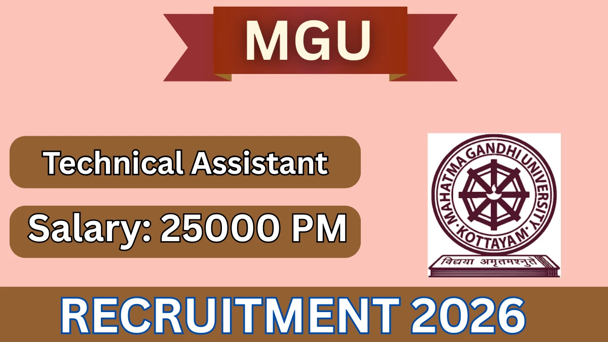 Mahatma Gandhi University (MGU) Recruitment 2026 for 01 posts of Technical Assistant. Candidates with B.A Can attend the walkin. The Walk-in on 27-01-2026. For detailed information please visit MGU official website, mgu.ac.in.