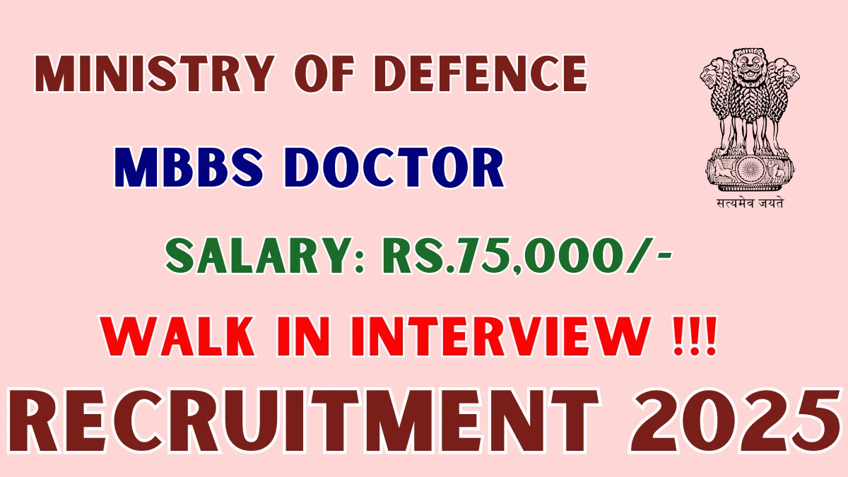 Name of the Post: Ministry Of Defence MBBS Doctor 2025 Walk in