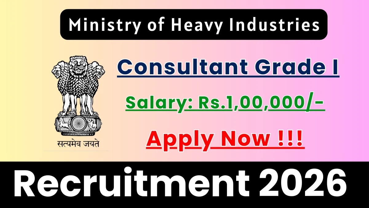 Ministry of Heavy Industries has released an official notification for the recruitment of 01 Consultant Grade I Posts. Interested and eligible candidates can apply Offline through the official Ministry of Heavy Industries website. The last date to submit the application form is 05-02-2026. In this article, you’ll find the Ministry of Heavy Industries Consultant Grade I Posts recruitment details, including eligibility criteria, age limit, salary structure, selection process, application steps, and direct links to the official notification and Offline application form.