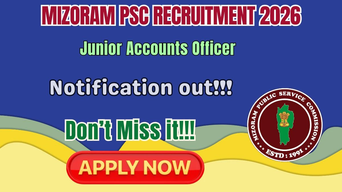Candidates who meet the eligibility criteria can apply online for the Mizoram PSC Junior Accounts Officer (JAO) Recruitment 2026.