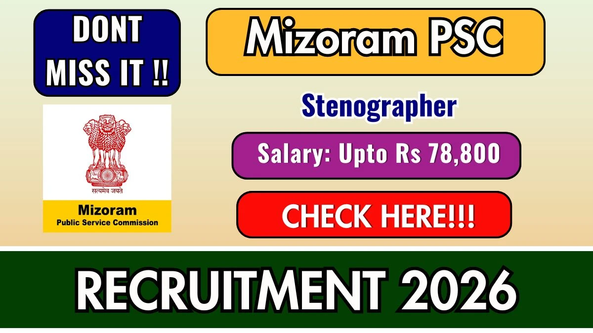 Mizoram Public Service Commission (Mizoram Public Service Commission) has released an official notification for the recruitment of 2 Stenographer Grade-III posts. Eligible and interested candidates can apply online for this recruitment before 06.02.2026. Detailed information regarding educational qualification, age limit, selection process, salary, application fee, and how to apply is given below.