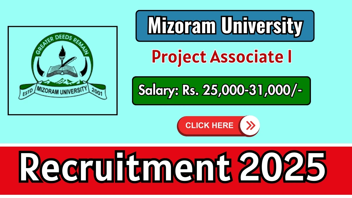Mizoram University has released an official notification for the recruitment of 01 Project Associate I Posts. Interested and eligible candidates can apply Offline through the official Mizoram University website. The last date to submit the application form is 23-10-2025. In this article, you’ll find the Mizoram University Project Associate I Posts recruitment details, including eligibility criteria, age limit, salary structure, selection process, application steps, and direct links to the official notification and Offline application form.