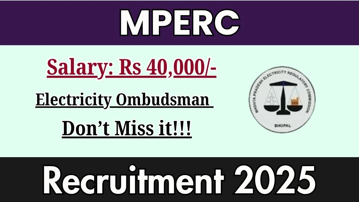 Madhya Pradesh Electricity Regulatory Commission (MPERC) has released an official notification for the recruitment of Electricity Ombudsman Posts. Interested and eligible candidates can apply Offline through the official MPERC website. The last date to submit the application form is 10-11-2025. In this article, you’ll find the MPERC Electricity Ombudsman Posts recruitment details, including eligibility criteria, age limit, salary structure, selection process, application steps, and direct links to the official notification and Offline application form.