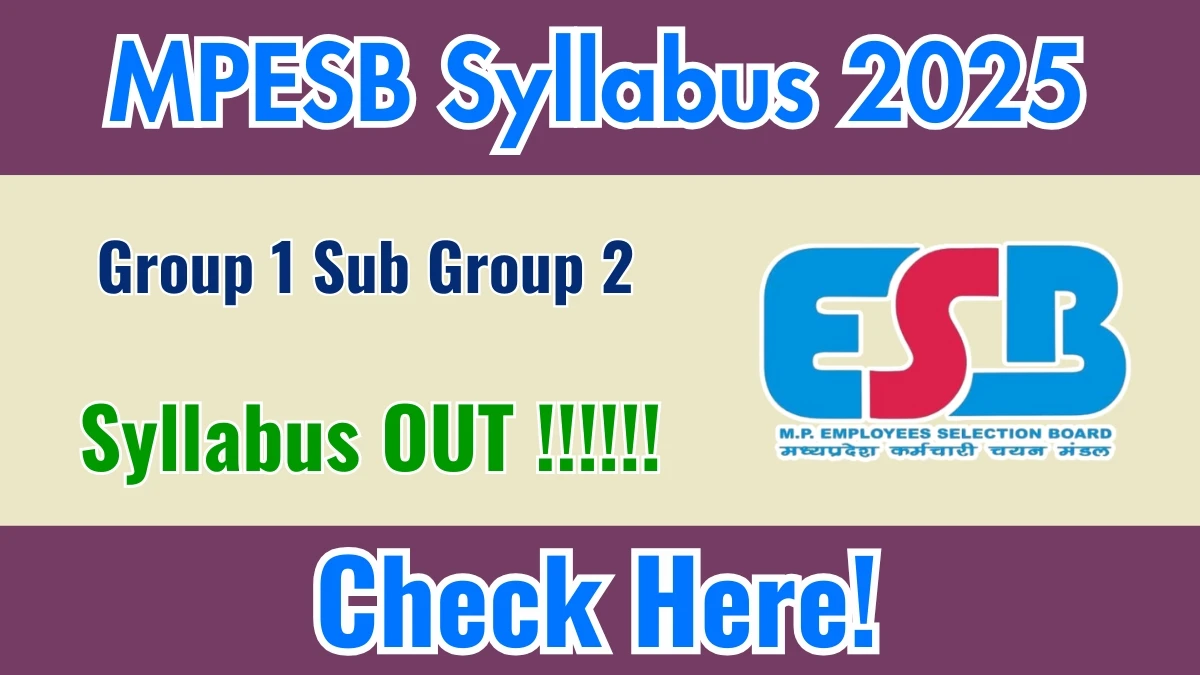 MPESB Group 1 Sub Group 2 Syllabus 2025: The Madhya Pradesh Employees Selection Board (MPESB) has officially released the detailed syllabus for Group 1 Sub Group 2 Exam 2025. Candidates preparing for the MPESB Group 1 Sub Group 2 recruitment can download the official syllabus PDF, exam pattern, and marking scheme from this page. This comprehensive guide covers subject-wise topics, preparation strategy, and important books for the MPESB Group 1 Sub Group 2 exam.