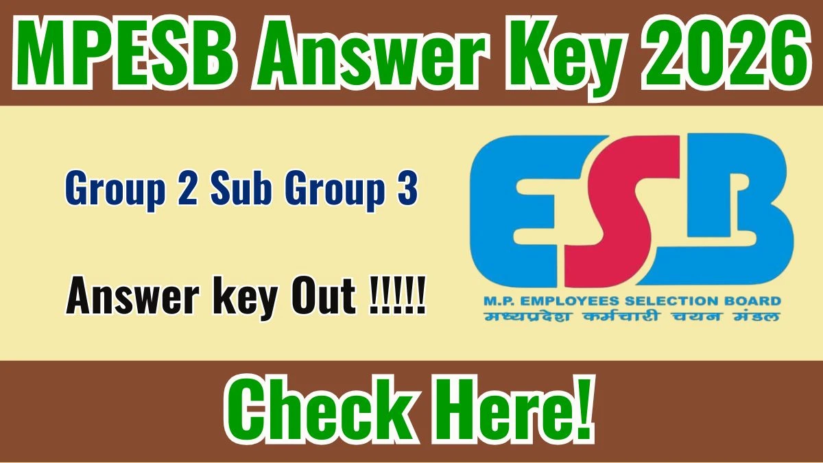 The Madhya Pradesh Employees Selection Board (MPESB) has released the Group 2 Sub Group 3 Answer Key 2026. Candidates who appeared for the Group 2 Sub Group 3 examination held on 28 January 2026 to 06 February 2026 can now check and download the provisional answer key from the official website esb.mp.gov.in.