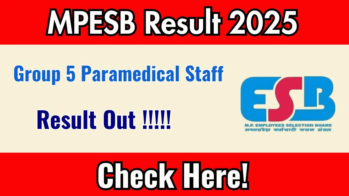 On 20 November 2025, MPESB Group 5 Paramedical Staff Result 2025 is out! MPESB Group 5 Paramedical Staff Result 2025 released on esb.mp.gov.in. MPESB has conducted the exam for Group 5 Paramedical Staff in various centers across the country/state. Candidates can check and download their results by visiting the esb.mp.gov.in.