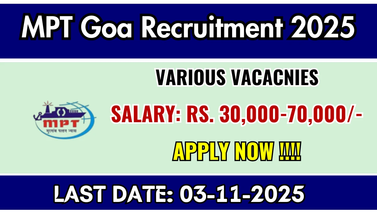 Mormugao Port Authority Goa (MPT Goa) has released an official notification for the recruitment of 03 Senior Advocate, Junior Advocate and More Posts. Interested and eligible candidates can apply Offline through the official MPT Goa website. The last date to submit the application form is 03-11-2025. In this article, you’ll find the MPT Goa Senior Advocate, Junior Advocate and More Posts recruitment details, including eligibility criteria, age limit, salary structure, selection process, application steps, and direct links to the official notification and Offline application form.