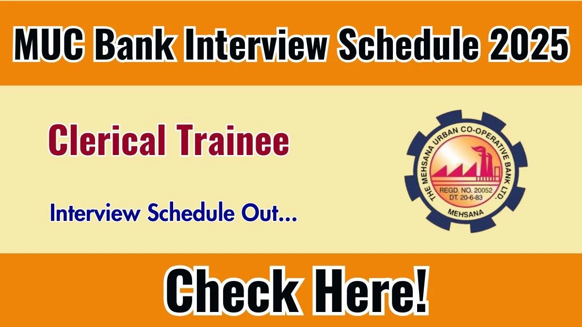 Mehsana Urban Co-operative Bank Ltd (MUC Bank) Clerical Trainee Interview Schedule 2025 |