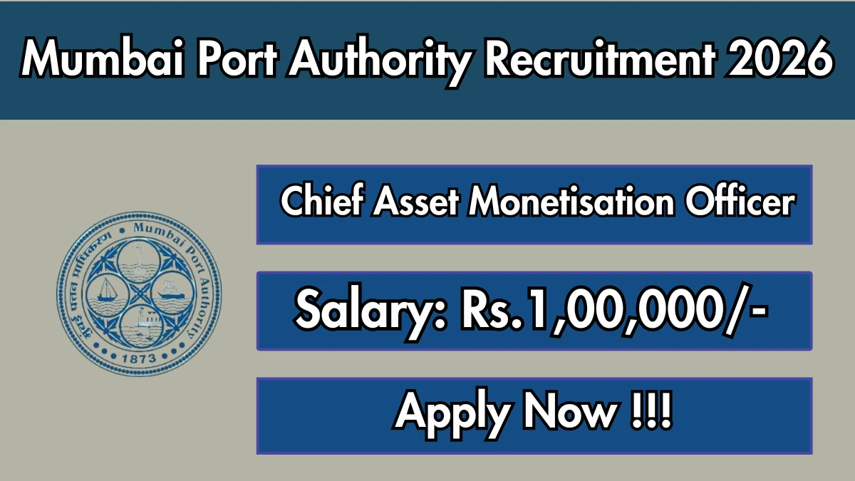 Mumbai Port Authority has released an official notification for the recruitment of 01 Chief Asset Monetisation Officer Posts. Interested and eligible candidates can apply Offline through the official Mumbai Port Authority website. The last date to submit the application form is 27-02-2026. In this article, you’ll find the Mumbai Port Authority Chief Asset Monetisation Officer Posts recruitment details, including eligibility criteria, age limit, salary structure, selection process, application steps, and direct links to the official notification and Offline application form.
