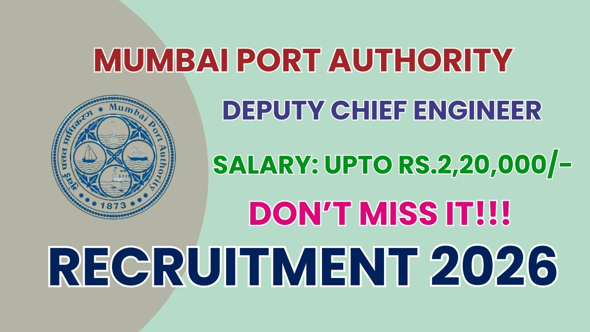 Mumbai Port Authority has released an official notification for the recruitment of 03 Deputy Chief Engineer Posts. Interested and eligible candidates can apply Online through the official Mumbai Port Authority website. The last date to submit the application form is 20-02-2026. In this article, you’ll find the Mumbai Port Authority Deputy Chief Engineer Posts recruitment details, including eligibility criteria, age limit, salary structure, selection process, application steps, and direct links to the official notification and Online application form.