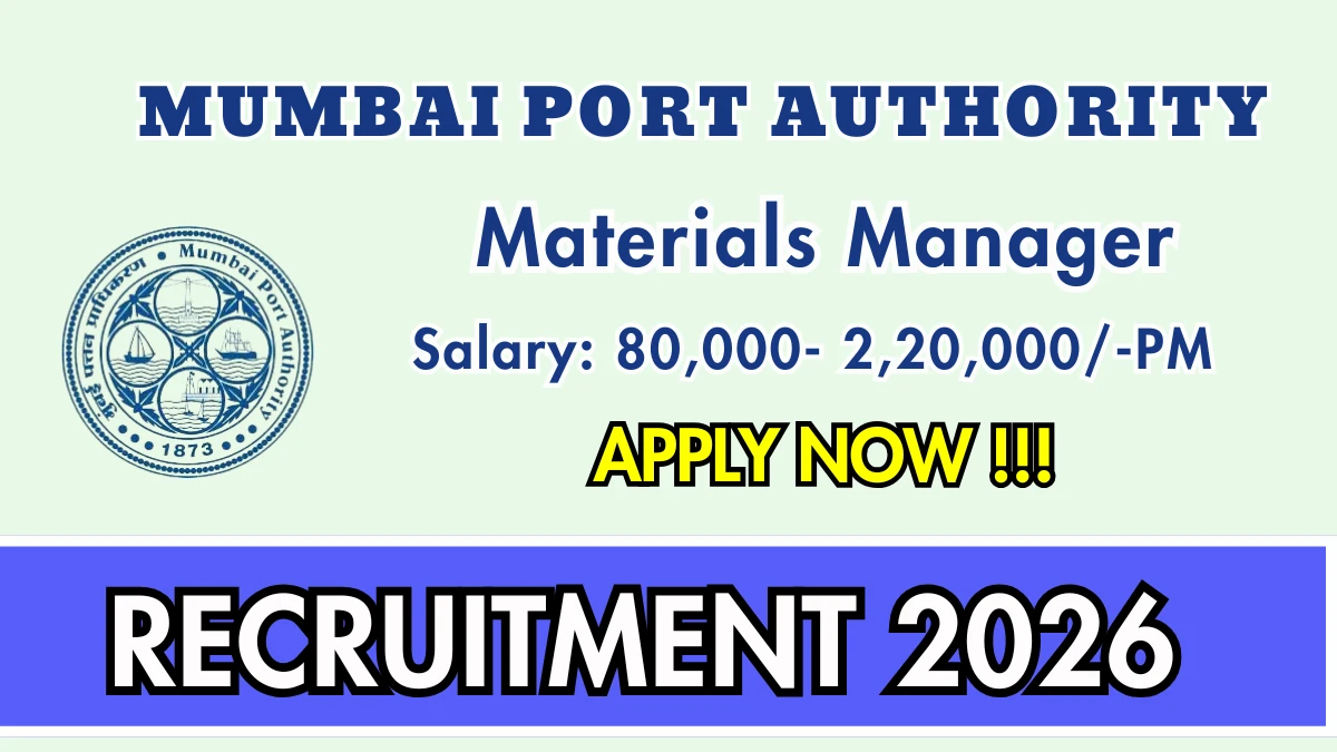Mumbai Port Authority Recruitment 2026: Mumbai Port Authority has released the official notification for 1 Materials Manager posts, inviting applications from eligible candidates in Maharashtra. This recruitment provides an excellent opportunity for candidates seeking stable and well-paid government jobs.