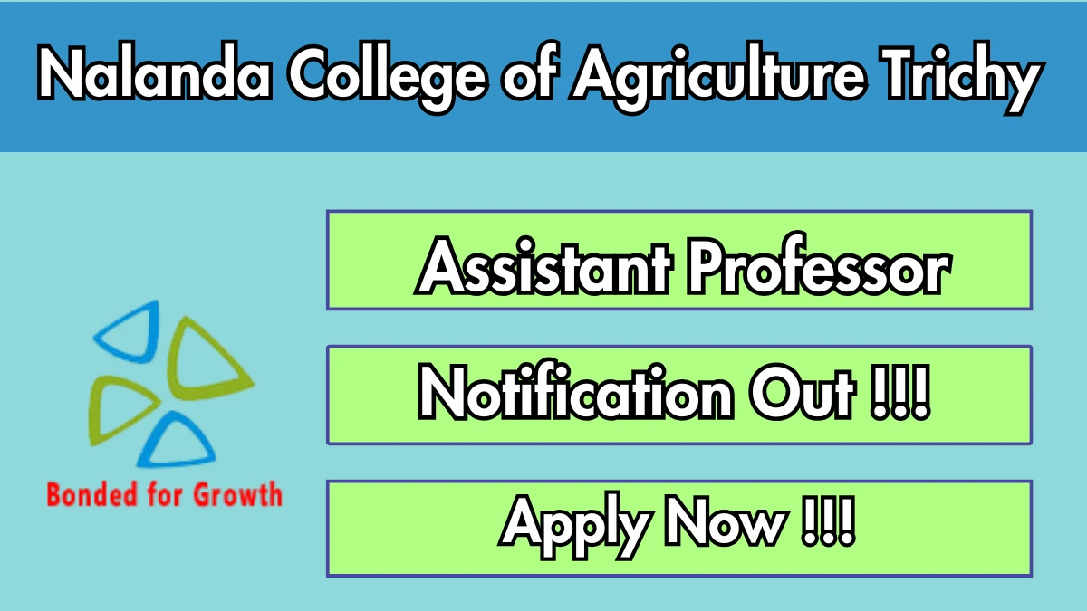 Nalanda College of Agriculture Trichy has released an official notification for the recruitment of 03 Assistant Professor Posts. Interested and eligible candidates can apply Online through the official Nalanda College of Agriculture Trichy website. The last date to submit the application form is 10-02-2026. In this article, you’ll find the Nalanda College of Agriculture Trichy Assistant Professor Posts recruitment details, including eligibility criteria, age limit, salary structure, selection process, application steps, and direct links to the official notification and Online application form.