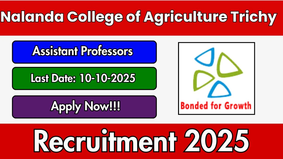 1. What is the last apply date for Nalanda College of Agriculture Trichy Assistant Professors 2025?