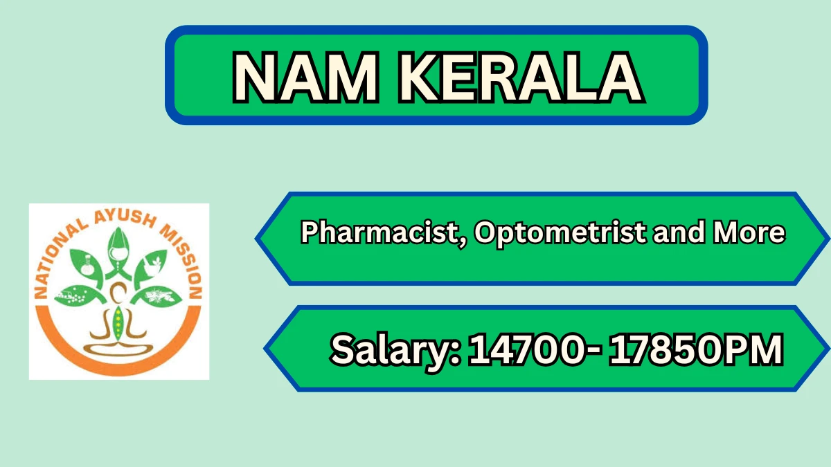 National Ayush Mission Kerala (NAM Kerala) Recruitment 2026 for Not Mentioned posts of Pharmacist, Optometrist and More. Candidates with B.Sc Can attend the walkin. The Walk-in on 30-01-2026. For detailed information please visit NAM Kerala official website, namayush.gov.in.