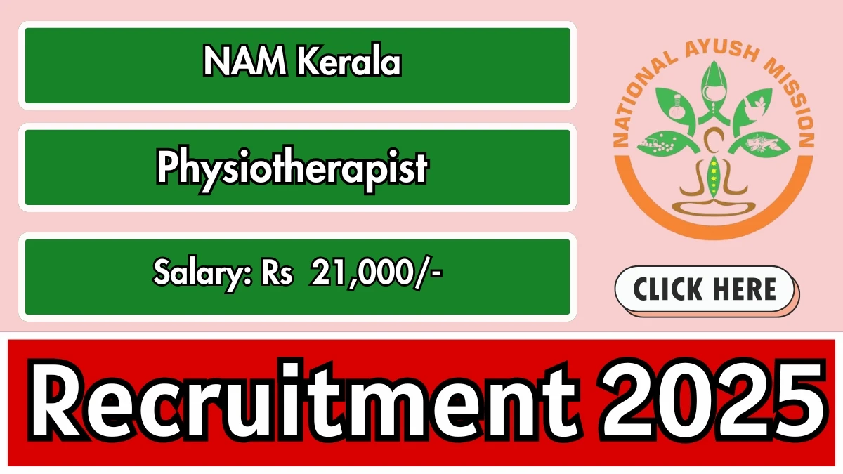 National Ayush Mission Kerala (NAM Kerala) Recruitment 2025 for 01 posts of Physiotherapist. Candidates with B.Sc, M.Sc Can attend the walkin. The Walk-in on 28-10-2025. For detailed information please visit NAM Kerala official website, nam.kerala.gov.in.