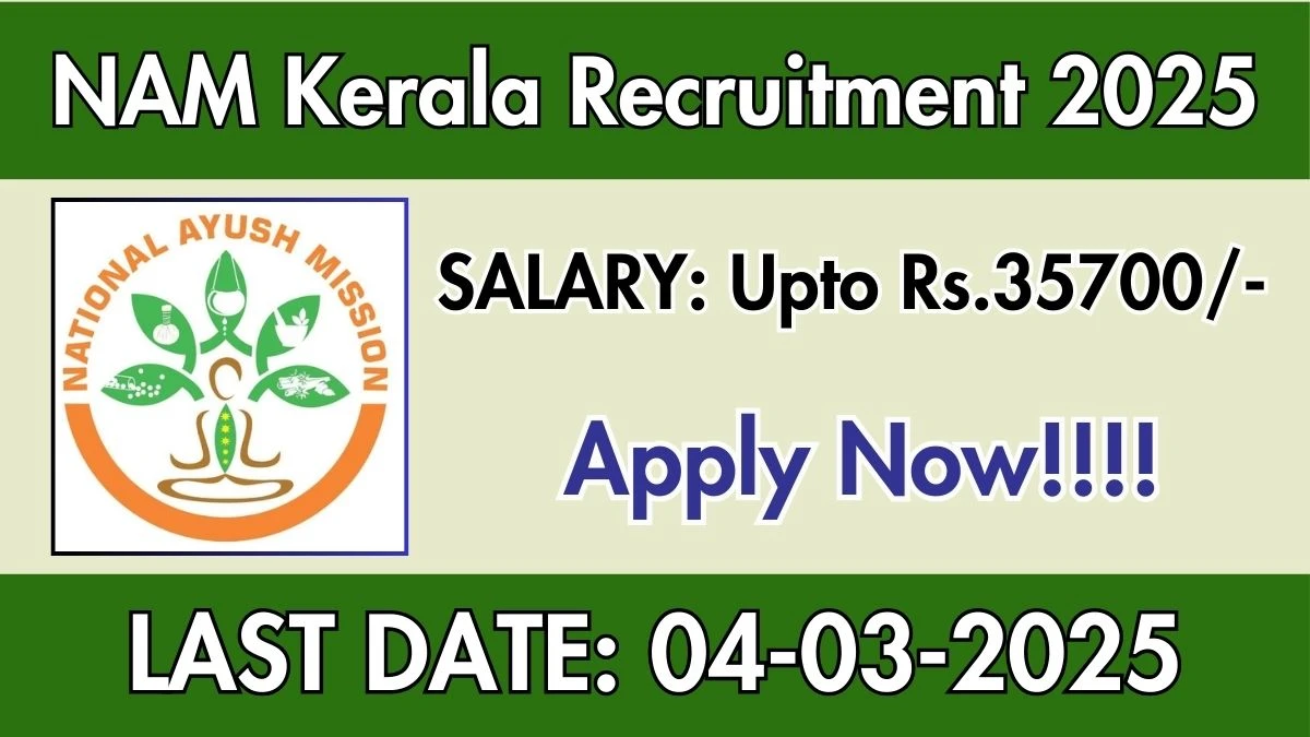 National Ayush Mission Kerela (NAM Kerala) Recruits Medical Officer, Journalist Trainee Posts. Candidates with Bachelors Degree, Diploma, BUMS Can Apply on or before 28-02-2025.