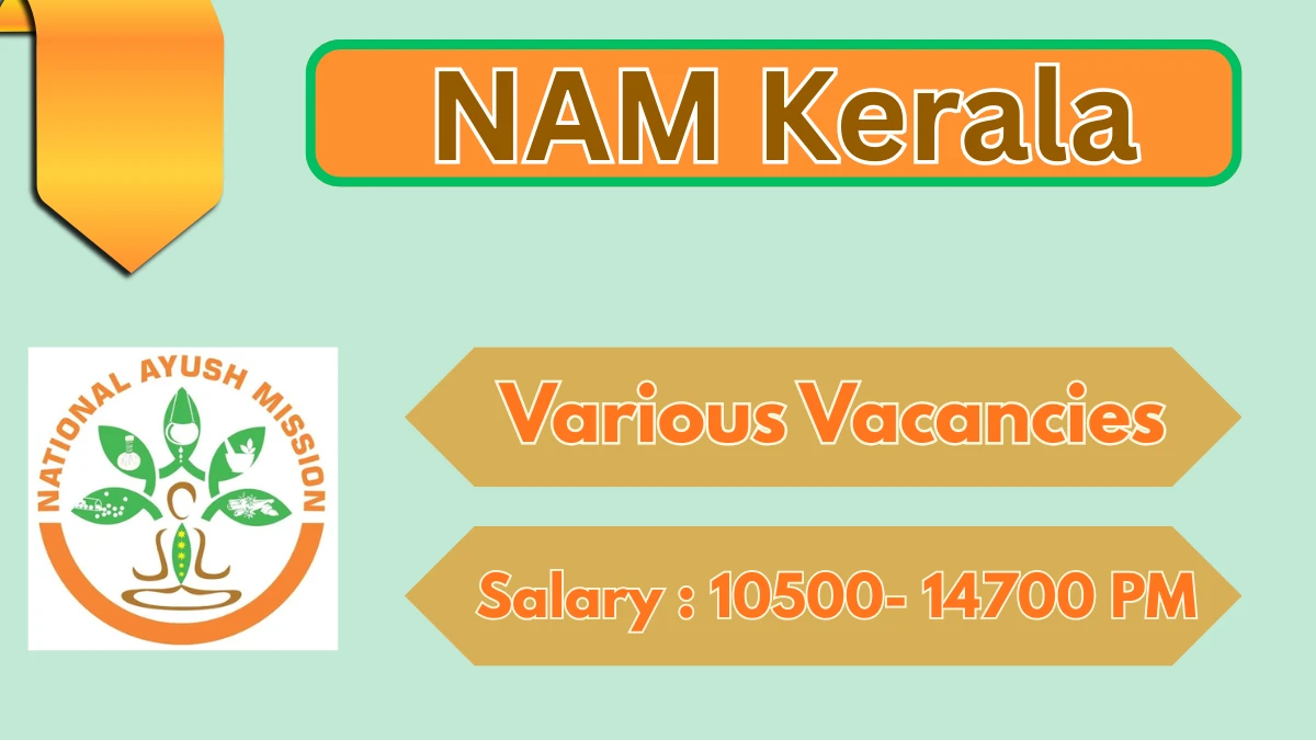 National Ayush Mission Kerala (NAM Kerala) has released Multipurpose Worker, Pharmacist, More vacancies. Eligible candidates with 12TH can apply Offline from January 17, 2026, to January 27, 2026, at nam.kerala.gov.in.