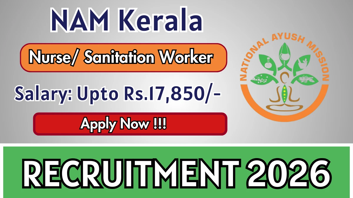 National AYUSH Mission, Kerala (NAM Kerala) has officially released a notification for the recruitment of 2 Nurse (GNM) / Sanitation Worker Posts. This recruitment drive offers a great opportunity for candidates looking for healthcare jobs. Interested and eligible candidates can download the application form from the official website and submit it offline.