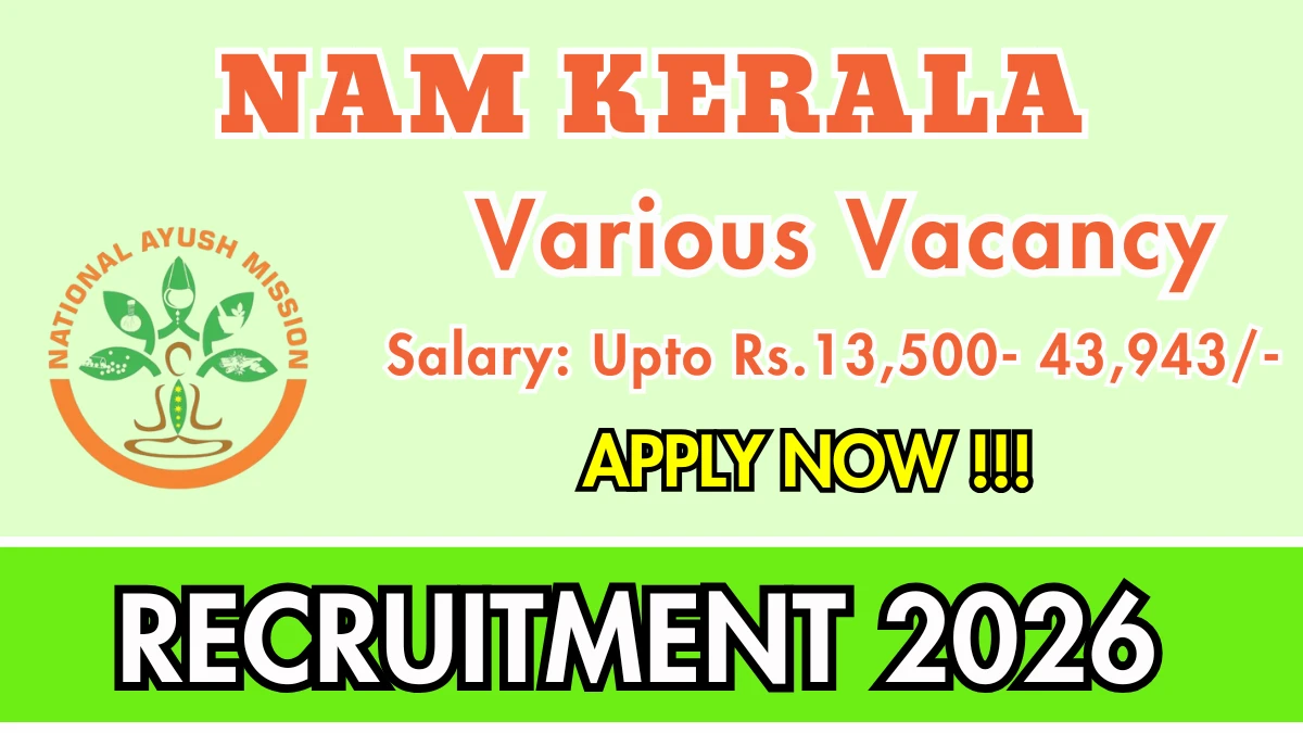 National Ayush Mission Kerala (NAM Kerala) has released an official notification for the recruitment MPW, Pharmacist and More Posts. Interested and eligible candidates can apply Online through the official NAM Kerala website. The last date to submit the application form is 03-02-2026. In this article, you’ll find the NAM Kerala MPW, Pharmacist and More Posts recruitment details, including eligibility criteria, age limit, salary structure, selection process, application steps, and direct links to the official notification and Online application form.