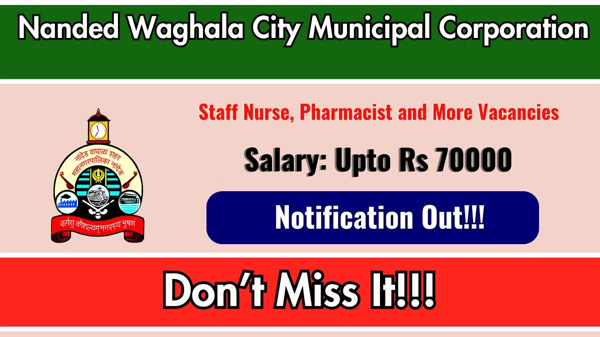 Nanded Waghala City Municipal Corporation (NWCMC) has published the Staff Nurse, Pharmacist, and More Posts Notification 2026 on 10 April 2026. The recruitment drive aims to fill 19 positions across various roles including Medical Officers, Staff Nurse, Pharmacist, Public Health Manager, City Quality Assurance Coordinator, and more.Candidates within the Max: 70 years for Medical Officers, Max: 59 years for Staff Nurse and Pharmacist, and Max: 38 years for City Quality Assurance Coordinator and Public Health Manager are eligible to apply offline at the official website nwcmc.gov.in. The application process will be active until 30 April 2026, and candidates can easily access the notification PDF and application link below.