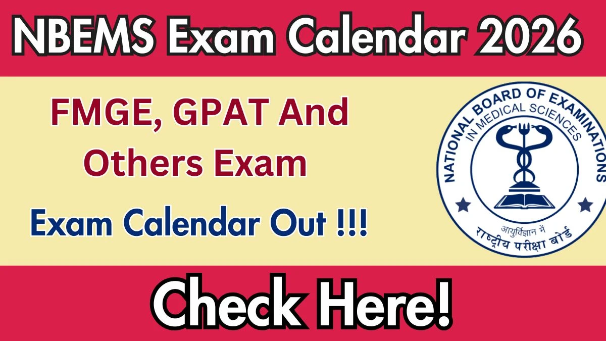 NBEMS Exam Calendar 2026: The National Board of Examinations in Medical Sciences (NBEMS) has officially released the tentative exam calendar for FMGE, GPAT, and other examinations in 2026. Candidates preparing for these national-level medical and pharmacy entrance/screening tests can check the complete schedule below. The examinations are scheduled throughout the first half of 2026. All eligible candidates are advised to monitor the official website and prepare accordingly.