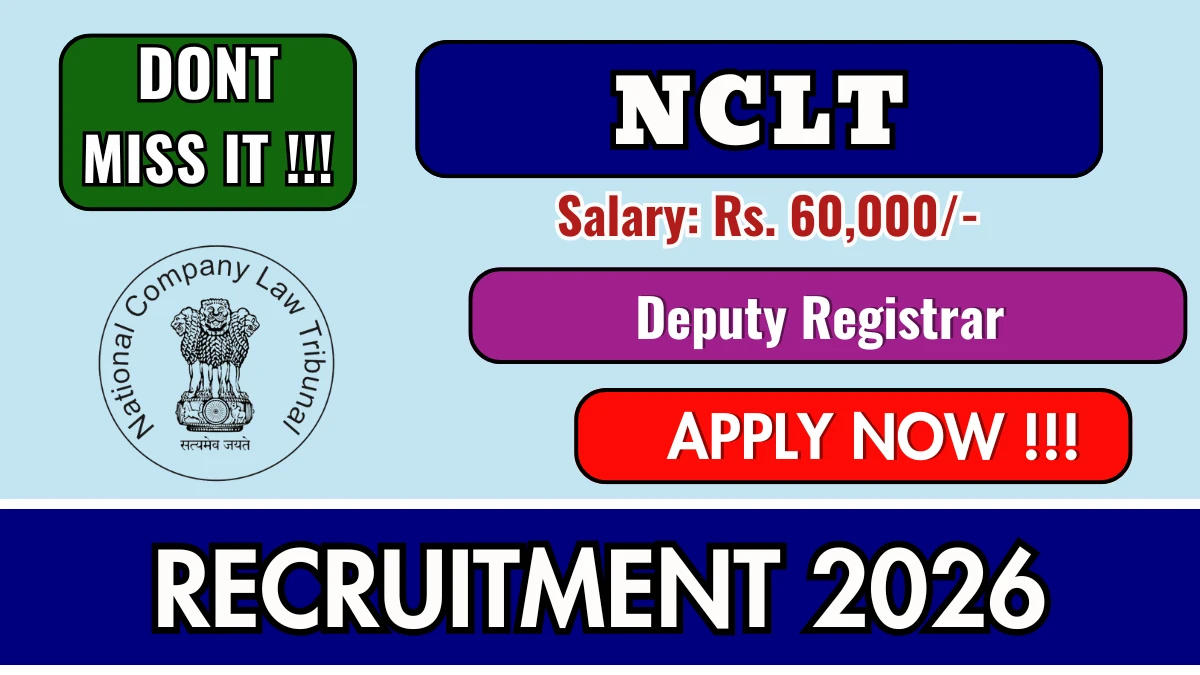 National Company Law Tribunal (NCLT) has released an official notification for the recruitment of 01 Deputy Registrar Posts. Interested and eligible candidates can apply Online through the official NCLT website. The last date to submit the application form is 27-02-2026. In this article, you’ll find the NCLT Deputy Registrar Posts recruitment details, including eligibility criteria, age limit, salary structure, selection process, application steps, and direct links to the official notification and Online application form.