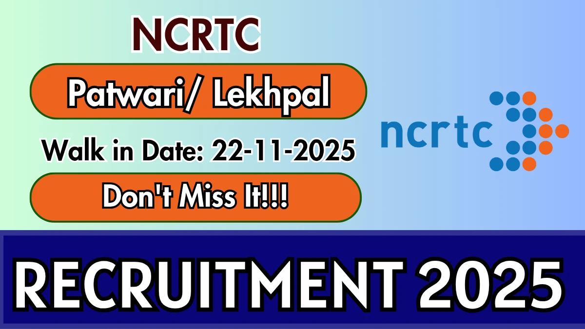 National Capital Region Transport Corporation (NCRTC) Recruitment 2025 for 02 posts of Patwari/ Lekhpal. Candidates with 10TH Can attend the walkin. The Walk-in on 22-11-2025. For detailed information please visit NCRTC official website, ncrtc.co.in.