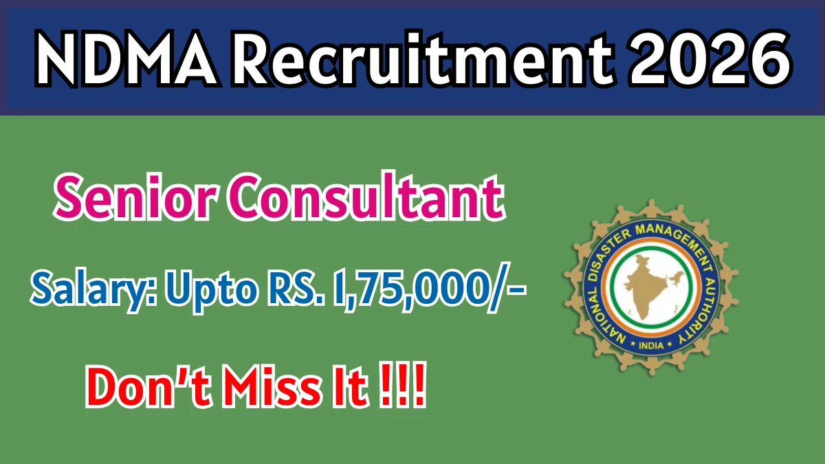 National Disaster Management Authority (NDMA) has released an official notification for the recruitment of 01 Senior Consultant Posts. Interested and eligible candidates can apply Online through the official NDMA website. The last date to submit the application form is 04-02-2026. In this article, you’ll find the NDMA Senior Consultant Posts recruitment details, including eligibility criteria, age limit, salary structure, selection process, application steps, and direct links to the official notification and Online application form.