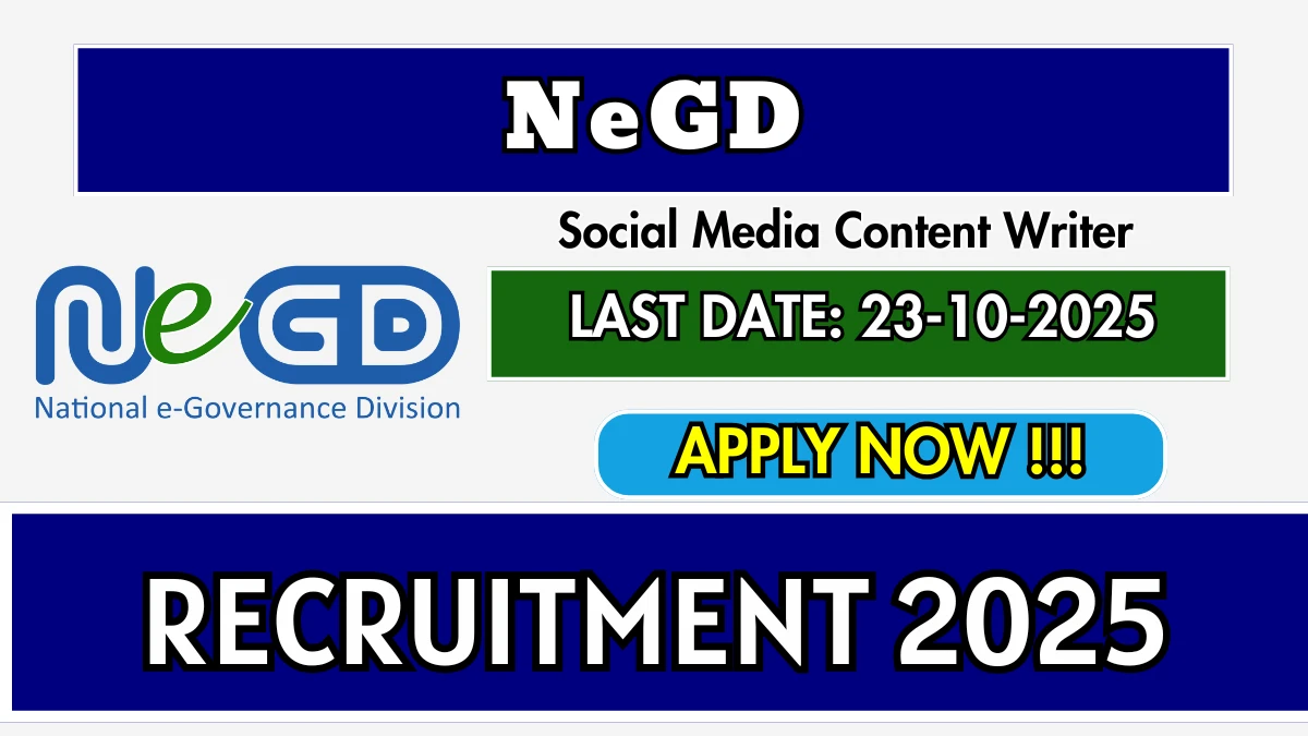 National e Governance Division (NeGD) has released an official notification for the recruitment of 01 Social Media Content Writer Posts. Interested and eligible candidates can apply Online through the official NeGD website. The last date to submit the application form is 23-10-2025. In this article, you’ll find the NeGD Social Media Content Writer Posts recruitment details, including eligibility criteria, age limit, salary structure, selection process, application steps, and direct links to the official notification and Online application form.