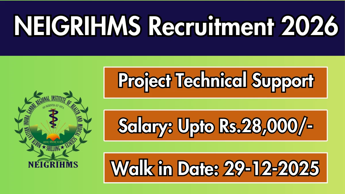North Eastern Indira Gandhi Regional Institute of Health and Medical Sciences (NEIGRIHMS) Recruitment 2025 for 02 posts of Project Technical Support. Candidates with Any Graduate Can attend the walkin. The Walk-in on 29 December 2025. For detailed information please visit NEIGRIHMS official website, neigrihms.gov.in.