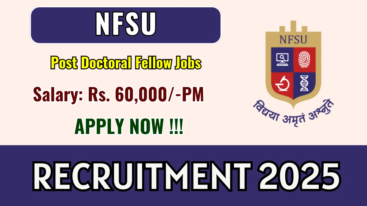 National Forensic Sciences University (NFSU) has released an official notification for the recruitment of 01 Post Doctoral Fellow Posts. Interested and eligible candidates can apply Offline through the official NFSU website. The last date to submit the application form is 15-10-2025. In this article, you’ll find the NFSU Post Doctoral Fellow Posts recruitment details, including eligibility criteria, age limit, salary structure, selection process, application steps, and direct links to the official notification and Offline application form.