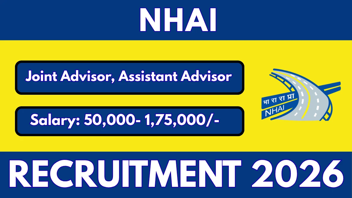 National Highways Authority of India (NHAI) Joint Advisor (Technical) & Assistant Advisor (Technical) Notification 2026 has been released on the official website of National Highways Authority of India. A total of 2 vacancies have been announced through the NHAI Joint Advisor & Assistant Advisor Recruitment 2026.