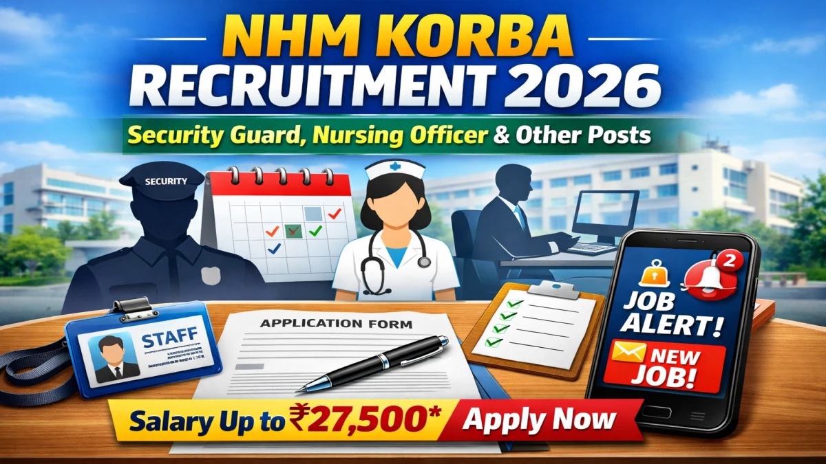 National Health Mission Korba (NHM Korba) has released an official notification for the recruitment of 50 Security Guard, Nursing Officer and Other Posts. Interested and eligible candidates can apply Offline through the official NHM Korba website. The last date to submit the application form is 27-02-2026. In this article, you’ll find the NHM Korba Security Guard, Nursing Officer and Other Posts recruitment details, including eligibility criteria, age limit, salary structure, selection process, application steps, and direct links to the official notification and Offline application form.
