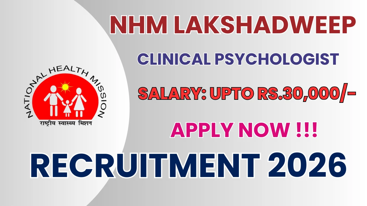 National Health Mission Lakshadweep (NHM Lakshadweep) has released an official notification for the recruitment of 01 Clinical Psychologist Posts. Interested and eligible candidates can apply Online through the official NHM Lakshadweep website. The last date to submit the application form is 15-02-2026. In this article, you’ll find the NHM Lakshadweep Clinical Psychologist Posts recruitment details, including eligibility criteria, age limit, salary structure, selection process, application steps, and direct links to the official notification and Online application form.