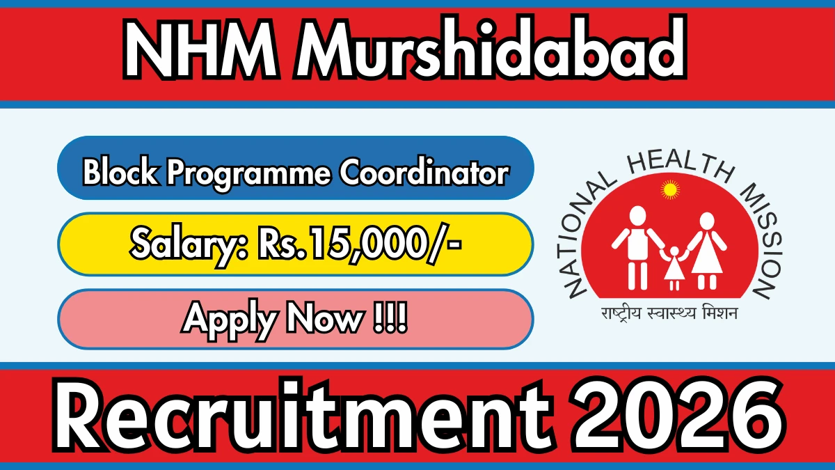 National Health Mission Murshidabad (NHM Murshidabad) has released an official notification for the recruitment of 10 Block Programme Coordinator Posts. Interested and eligible candidates can apply Online through the official NHM Murshidabad website. The last date to submit the application form is 21-02-2026. In this article, you’ll find the NHM Murshidabad Block Programme Coordinator Posts recruitment details, including eligibility criteria, age limit, salary structure, selection process, application steps, and direct links to the official notification and Online application form.