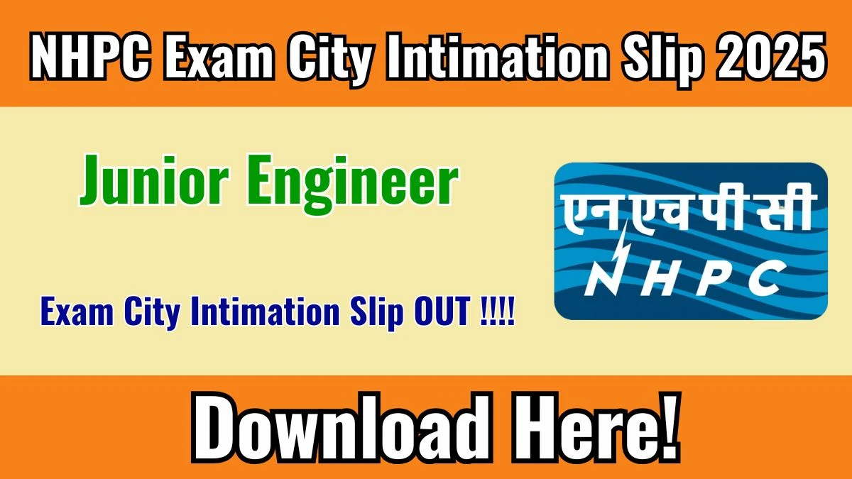 Download NHPC JE Exam City Intimation Slip 2025 Soon! Get direct link, step-by-step process, and important exam details. Visit nhpcindia.com to download.