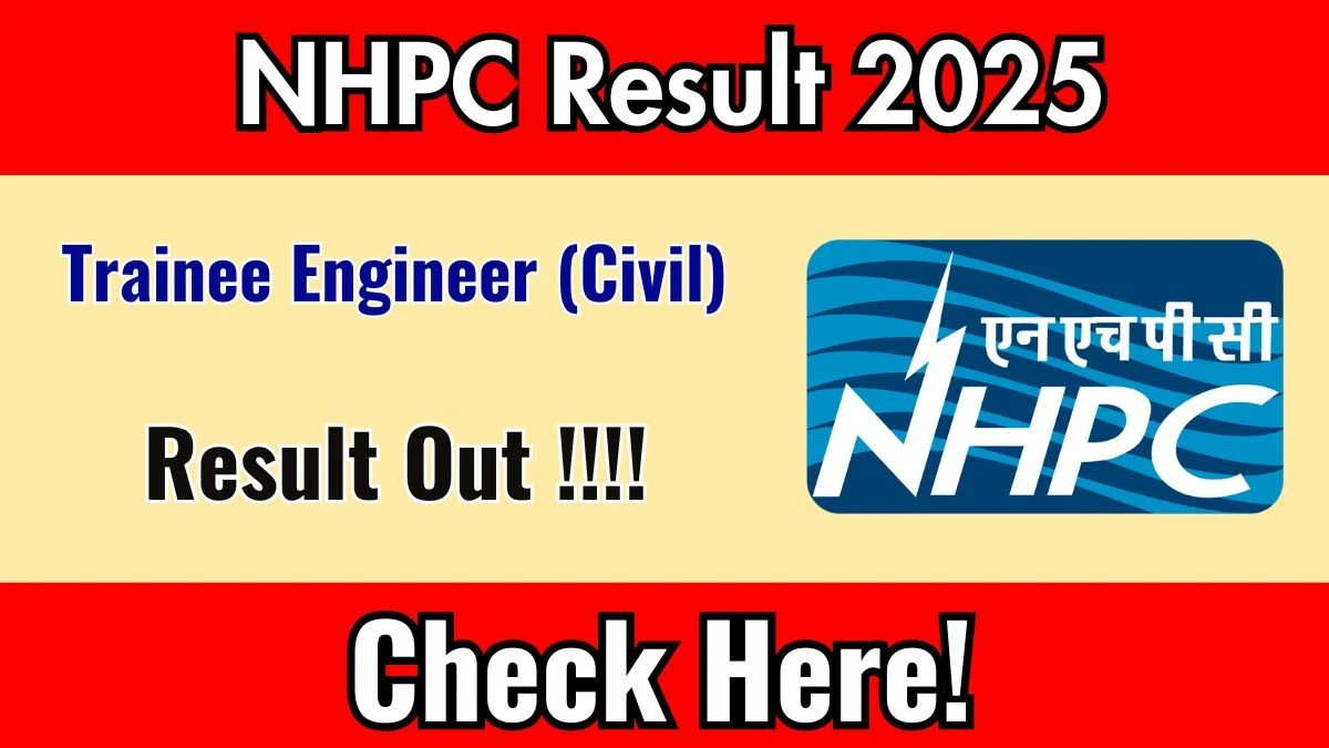 On 13-10-2025, NHPC Trainee Engineer (Civil) Result 2025 is out! NHPC Trainee Engineer (Civil) Result 2025 released on nhpcindia.com. NHPC has conducted the exam for Trainee Engineer (Civil) in various centers across the country/state. Candidates can check and download their results by visiting the nhpcindia.com.