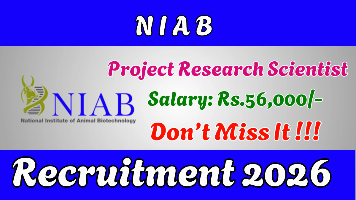 BRIC-National Institute of Animal Biotechnology (NIAB) Recruitment 2026: BRIC-National Institute of Animal Biotechnology has released the official notification for 1 Project Research Scientist-1 (Non-Medical) posts, inviting applications from eligible candidates in Telangana. This recruitment provides an excellent opportunity for candidates seeking stable and well-paid research jobs.