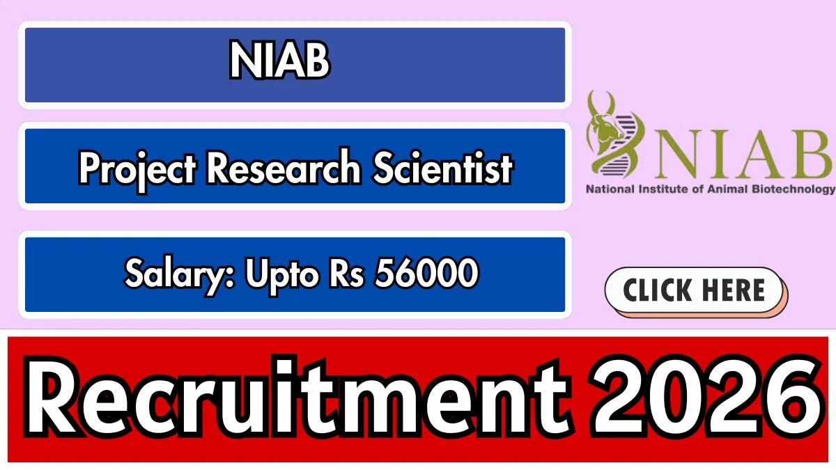 National Institute of Animal Biotechnology (NIAB) has released an official notification for the recruitment of 01 Project Research Scientist Posts. Interested and eligible candidates can apply Online through the official NIAB website. The last date to submit the application form is 06-02-2026. In this article, you’ll find the NIAB Project Research Scientist Posts recruitment details, including eligibility criteria, age limit, salary structure, selection process, application steps, and direct links to the official notification and Online application form.