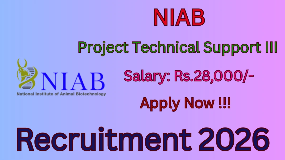 National Institute of Animal Biotechnology (NIAB) has released an official notification for the recruitment of 01 Project Technical Support III Posts. Interested and eligible candidates can apply Online through the official NIAB website. The last date to submit the application form is 23-01-2026. In this article, you’ll find the NIAB Project Technical Support III Posts recruitment details, including eligibility criteria, age limit, salary structure, selection process, application steps, and direct links to the official notification and Online application form.